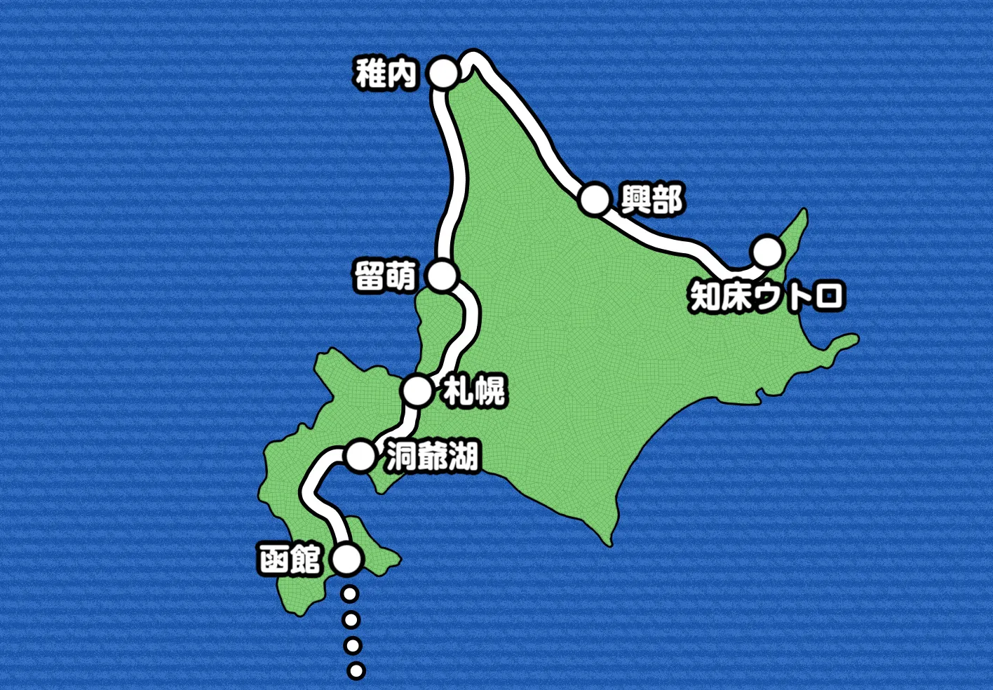 お盆休みの忙しさが落ち着きはじめた8月19日。毎年の顔なじみとなった職場のメンバーに見送られ、私は知床を出発しました。一旦オホーツク海に沿って北上した後、日本最北端の「宗谷岬」を経由してから南下を開始します。5泊6日の道内行程で宿泊地としたのは、興部(おこっぺ)・稚内(わっかない)・留萌(るもい)・札幌・洞爺(とうや)湖(こ)の5ヶ所で、6日目の夜に函館から青森行きのフェリーに乗って北海道を脱しました。道内ではライダーハウスやキャンプ場に多く滞在し、雄大な景色の中で同志のライダーたちとの交流できたのが印象に残っています。夏の北海道を2輪で旅するのは最高です。