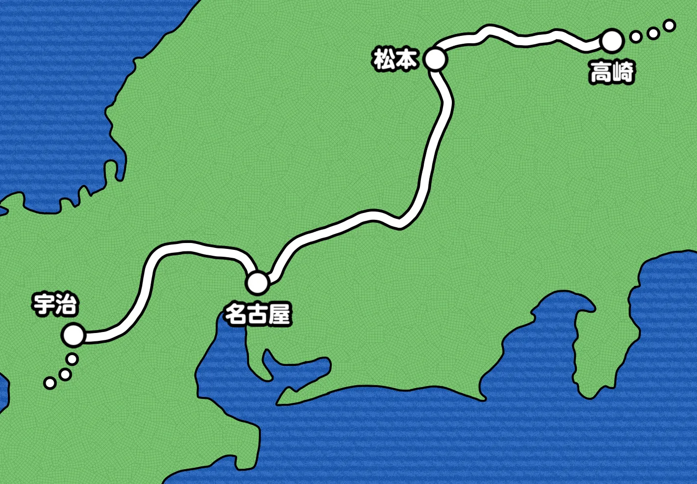 そこから先もコインの神様は内陸ルートを示し続け、高崎から松本・名古屋・京都(宇治)を通って西へ進みました。束の間の帰省は叶いませんでしたが、京都で大学の先輩の実家に一晩泊めていただくことができたので、これもまたいい意味での旅のめぐり合わせでした。