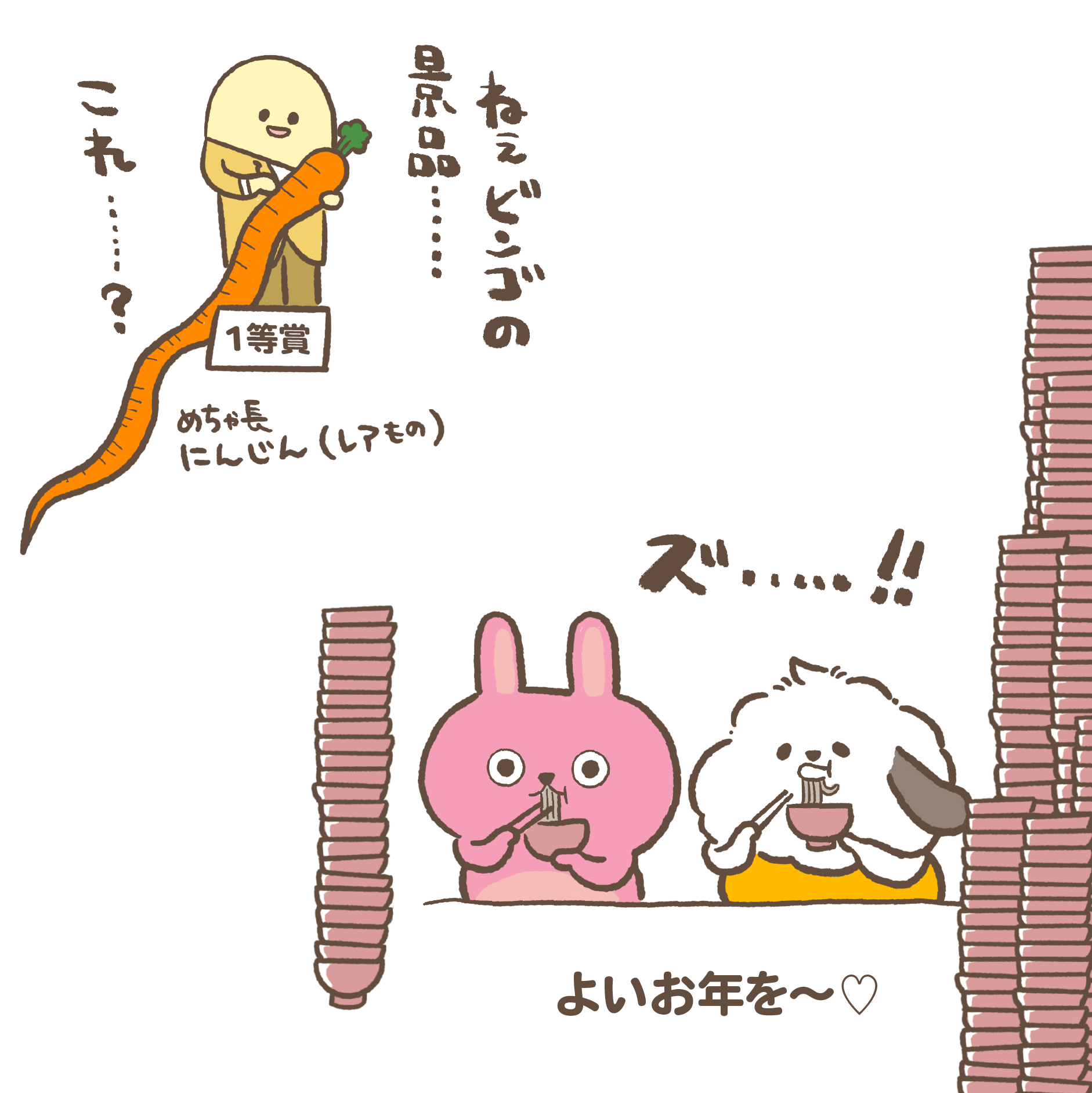 無事に(?)年越イベントの準備を終えたいぬぽにょたち。