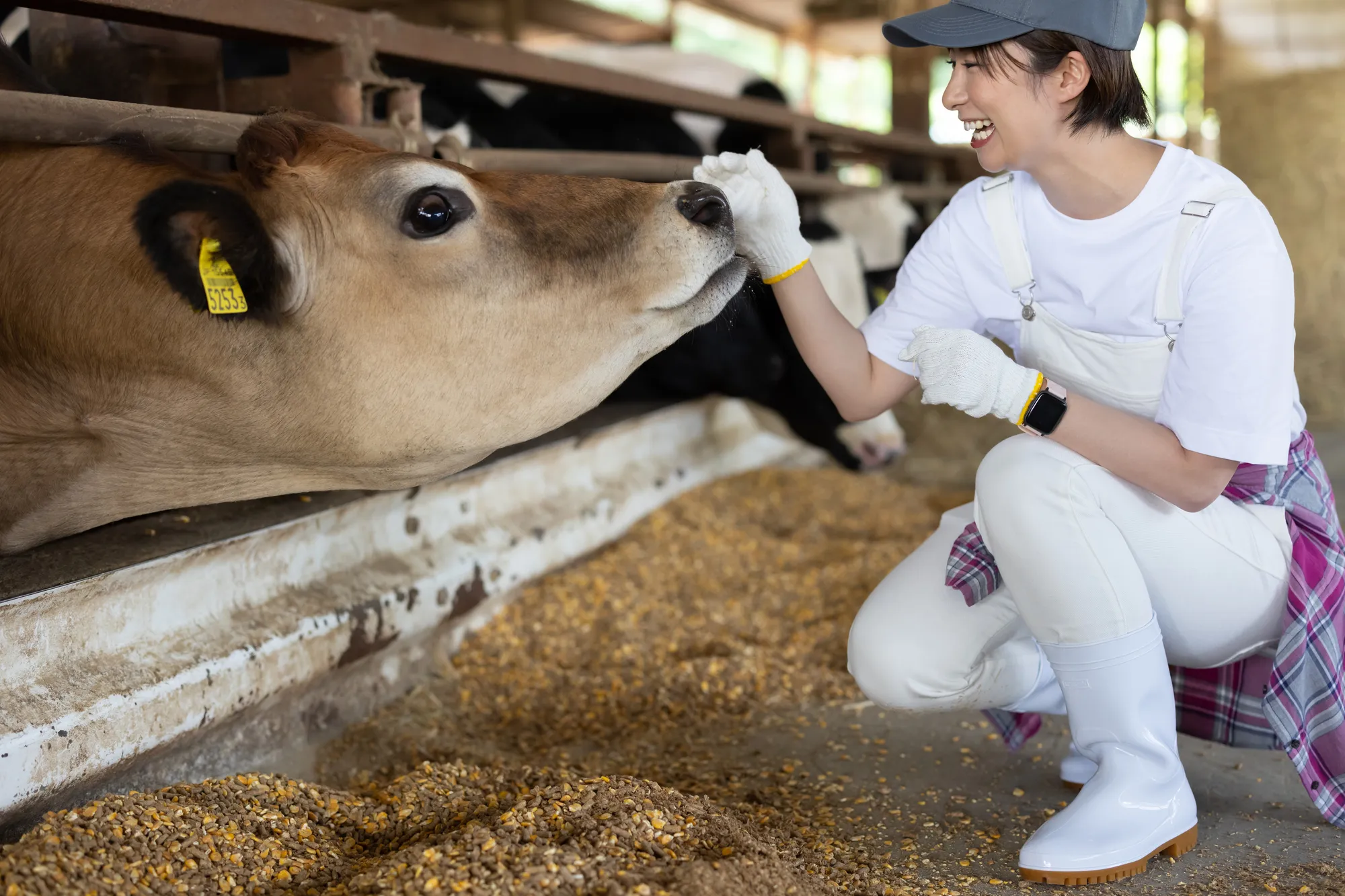 - 牧場: エサやり、牛舎の掃除、乳搾り、体調管理など
