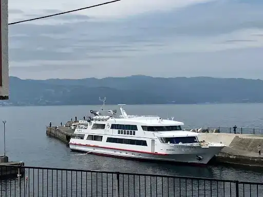 - ①東京駅−熱海駅 新幹線40分 で4,080円、電車1時間50分 で1,890円 ②熱海駅−熱海港 路線バス15分 ③熱海港からフェリーで25分