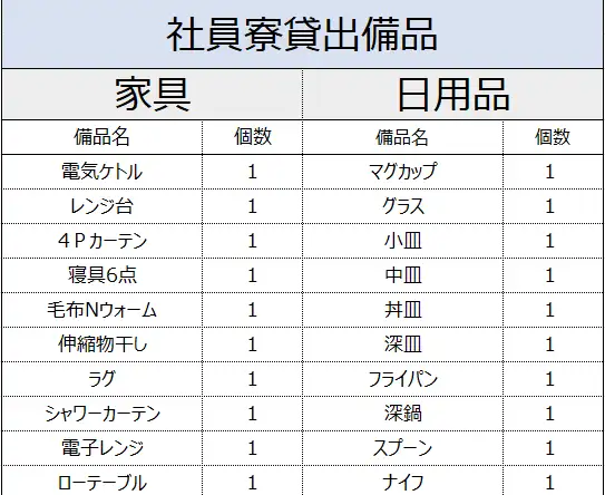 提供している寮②の情報