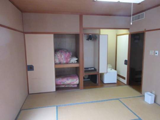 【部屋内】寝具、テーブル、洗面所、広さ:8畳程度