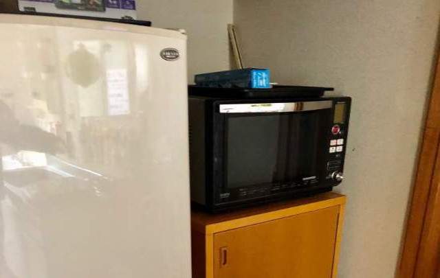 電子レンジあり。大手化粧水会社の商品(シャンプーなど)が無料で使えます♪
