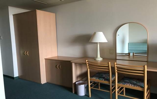 管理人さんがいて安心です!広さは10畳一間をお一人で利用可能!キッチンには電磁調理器、電子レンジ、オーブントースター、ポット、炊飯器の用意をしています。 共用のまな板・包丁・フライパン・ボウル・ザル・お玉・食器用洗剤、スポンジがあります。 ホテル大浴場利用相談可能(休日のみ利用可。利用日・時間帯に限りあり)